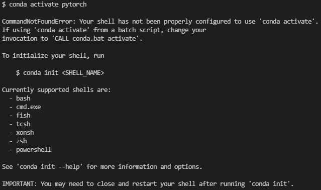 IMPORTANT: You may need to close and restart your shell after running 'conda init'.